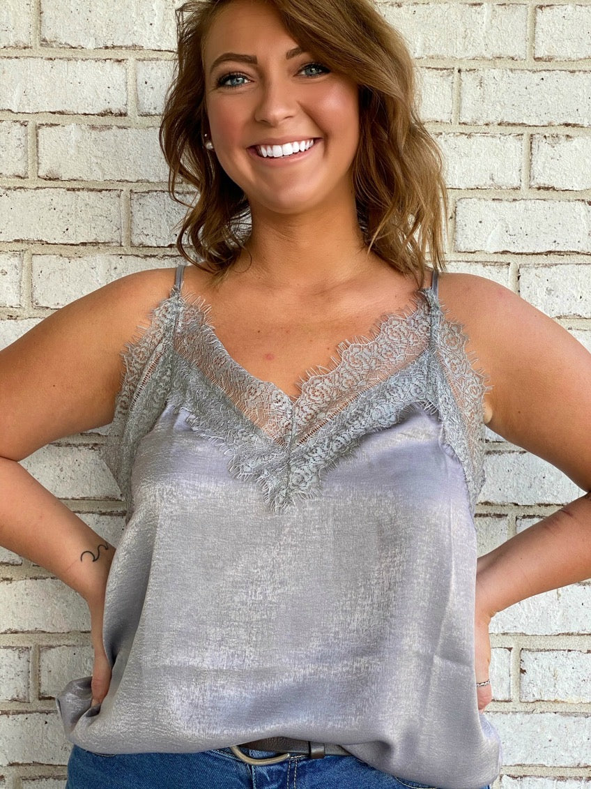For The Girls Silk Tank - GRAY - $29.99