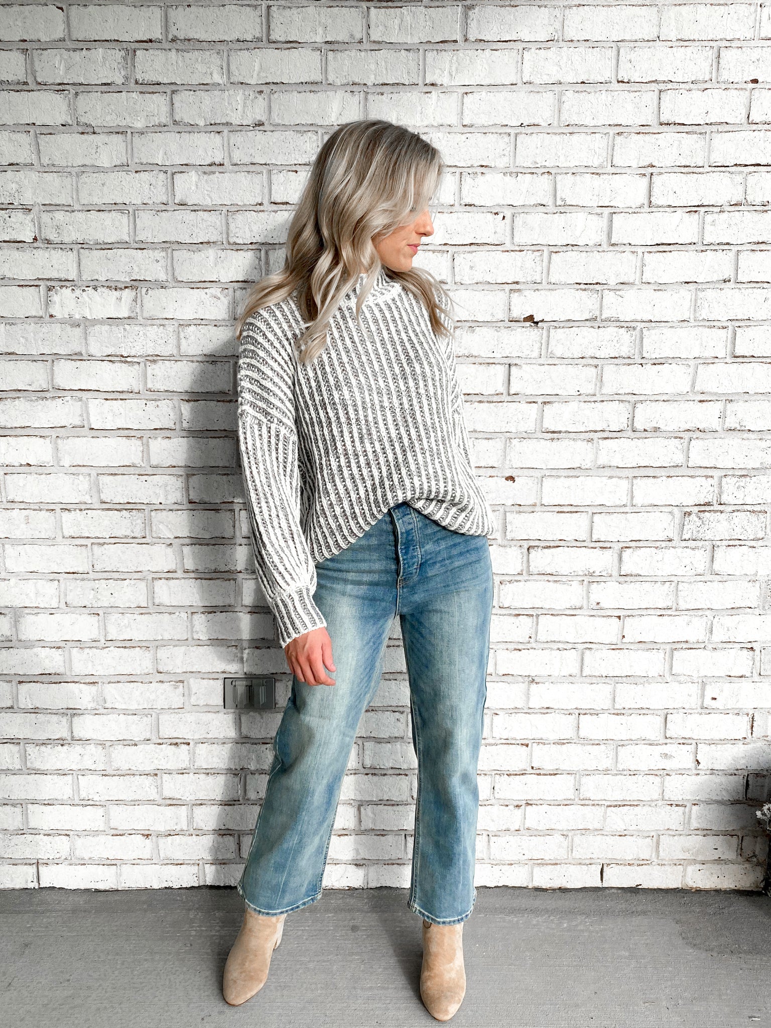 Sophisticated gray, two-tone sweater. Featuring balloon sleeves with a cuffed wrist & a mock neckline. This is sure to keep you warm through the cooler seasons! Tuck it in, or out, either way this will be your new...Read more