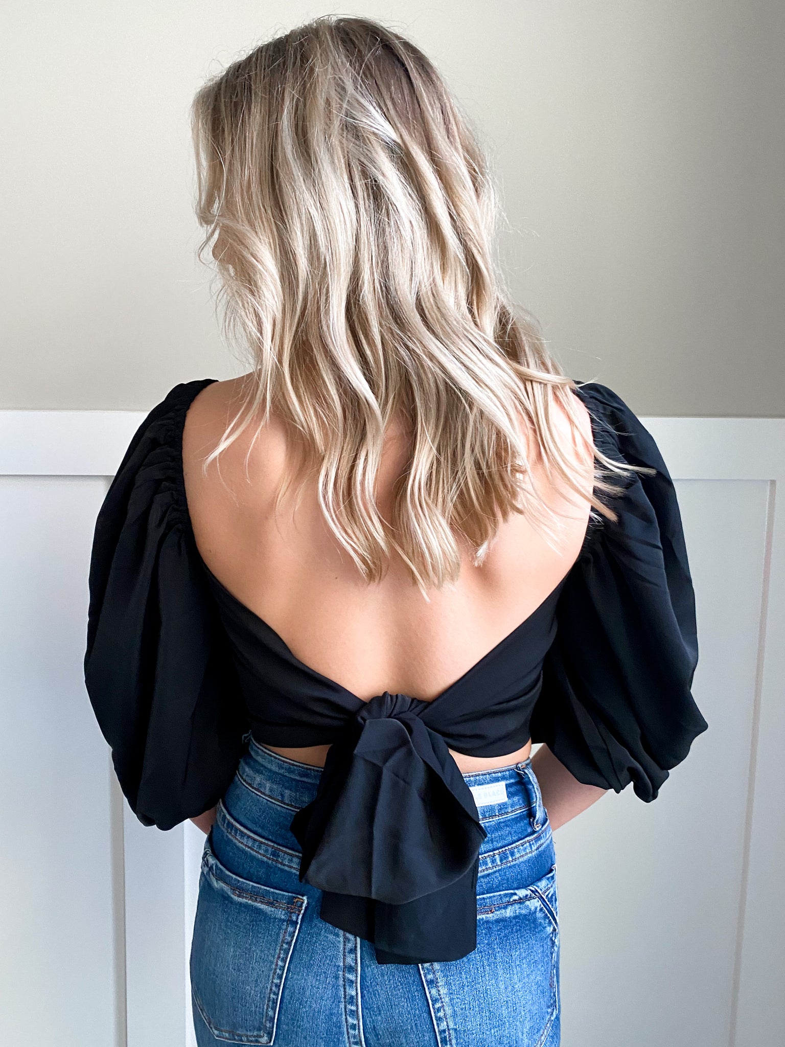 Head turning, little black top featuring balloon style sleeves & a square-like neckline.  Adjustable fit, as the back ties however tight you might need it.  Underwire feature, mimicking a bra.  Model is wearing a size SM & typically...Read more